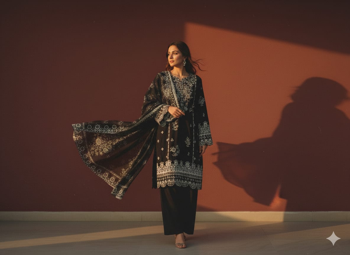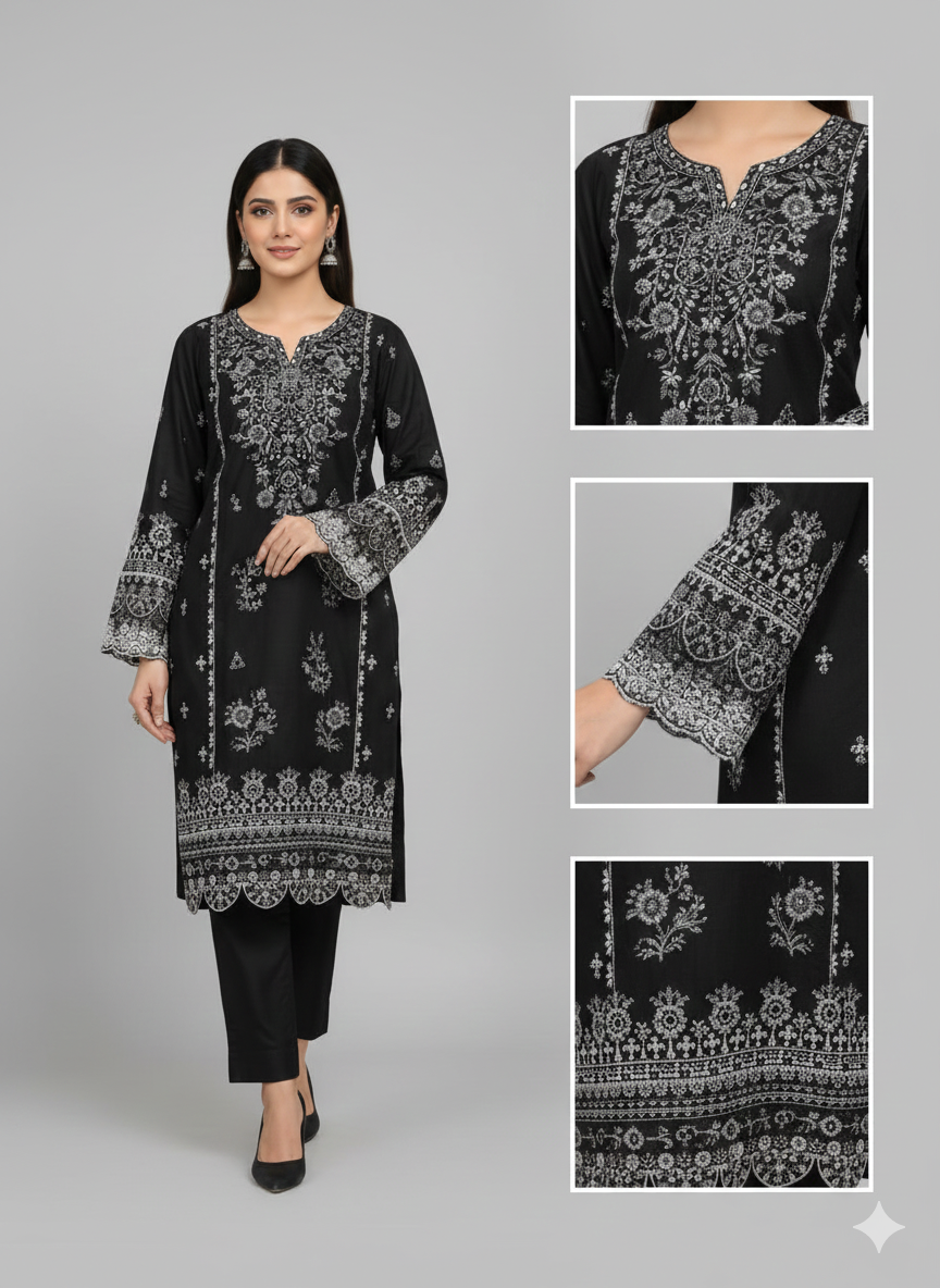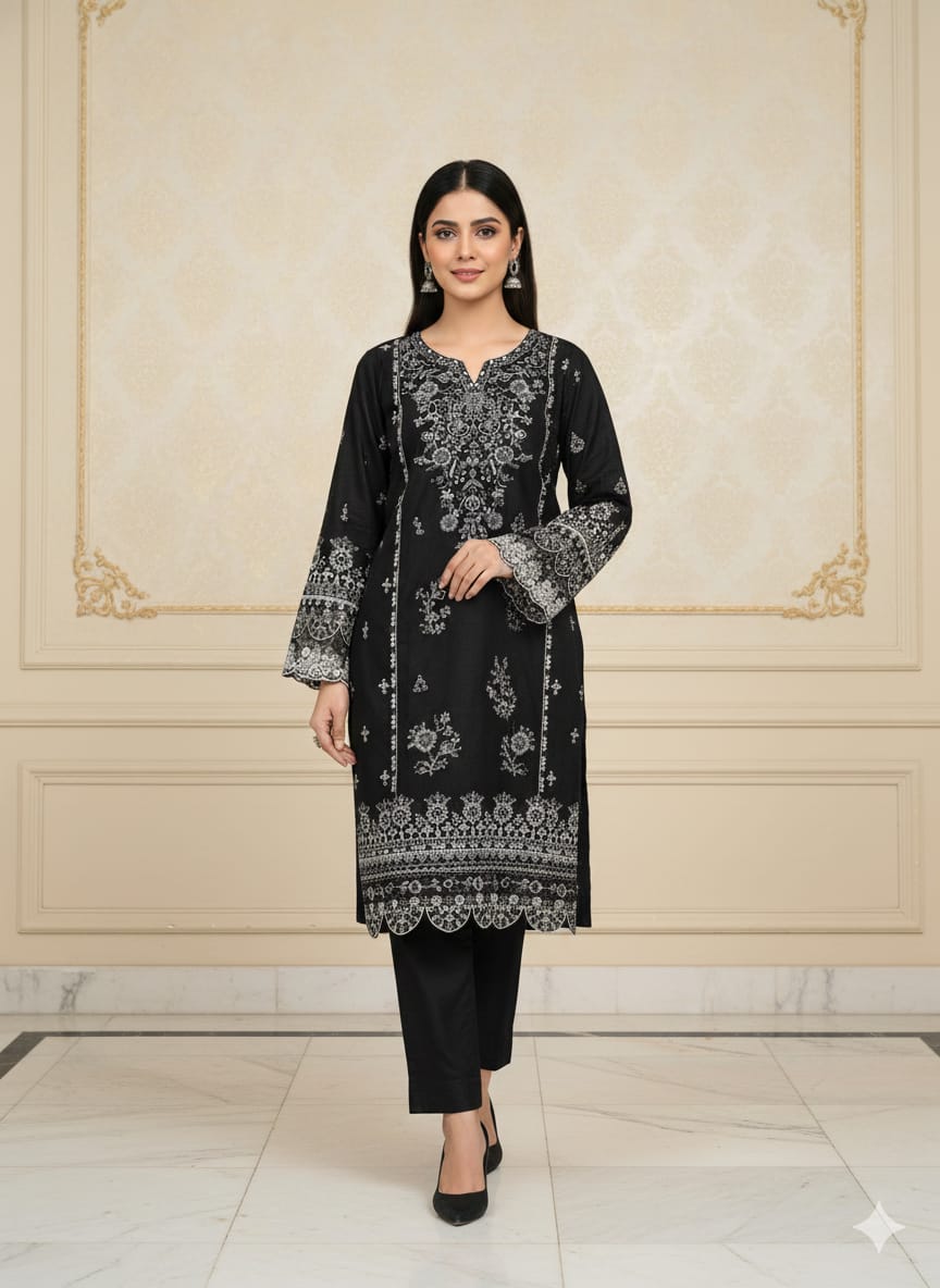 Experience timeless elegance with this beautifully embroidered suit from Rang-e-Gulzar, crafted with premium fabric and intricate threadwork. Available in Black, it offers a graceful, comfortable look for everyday wear and special occasions.